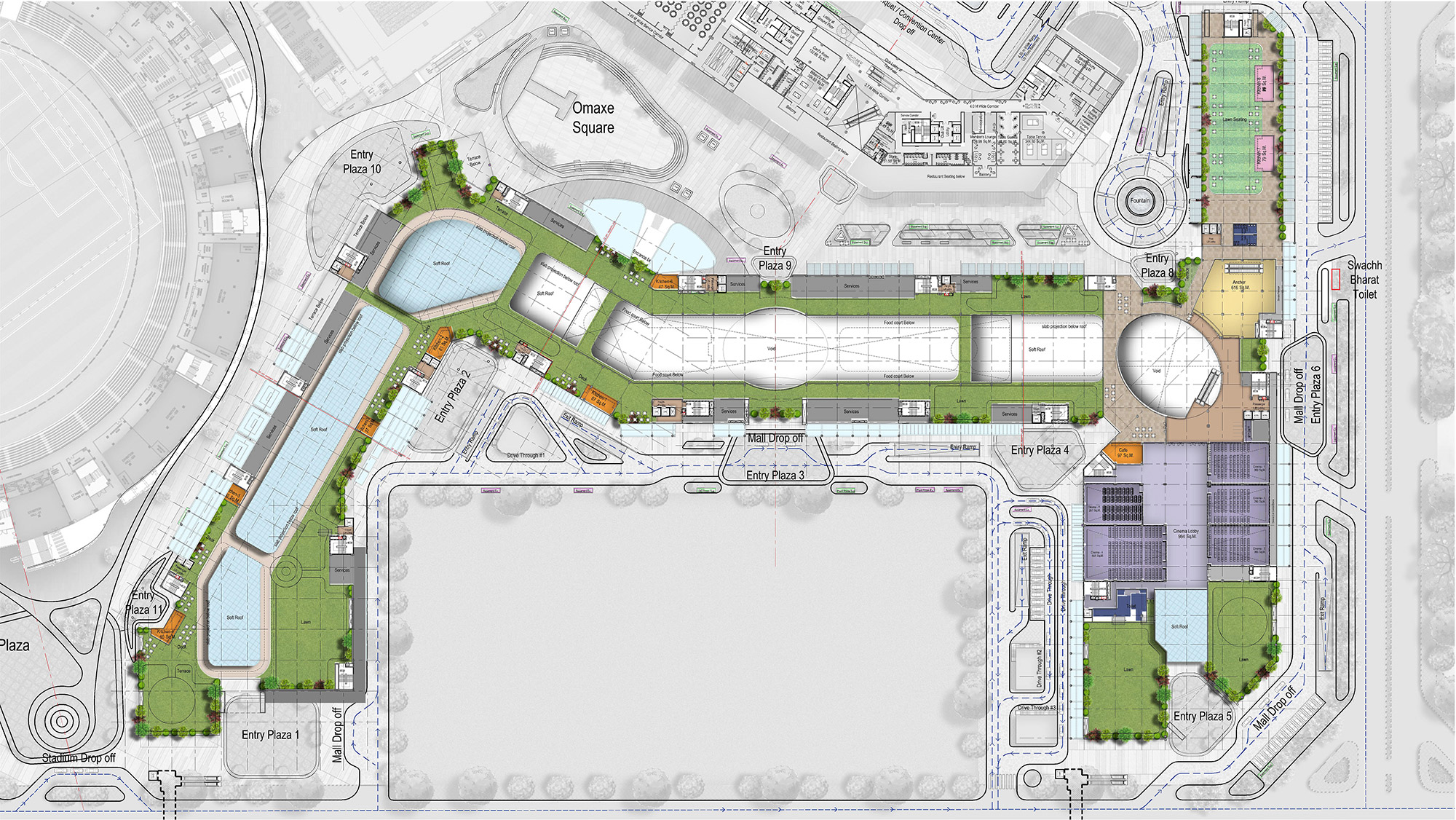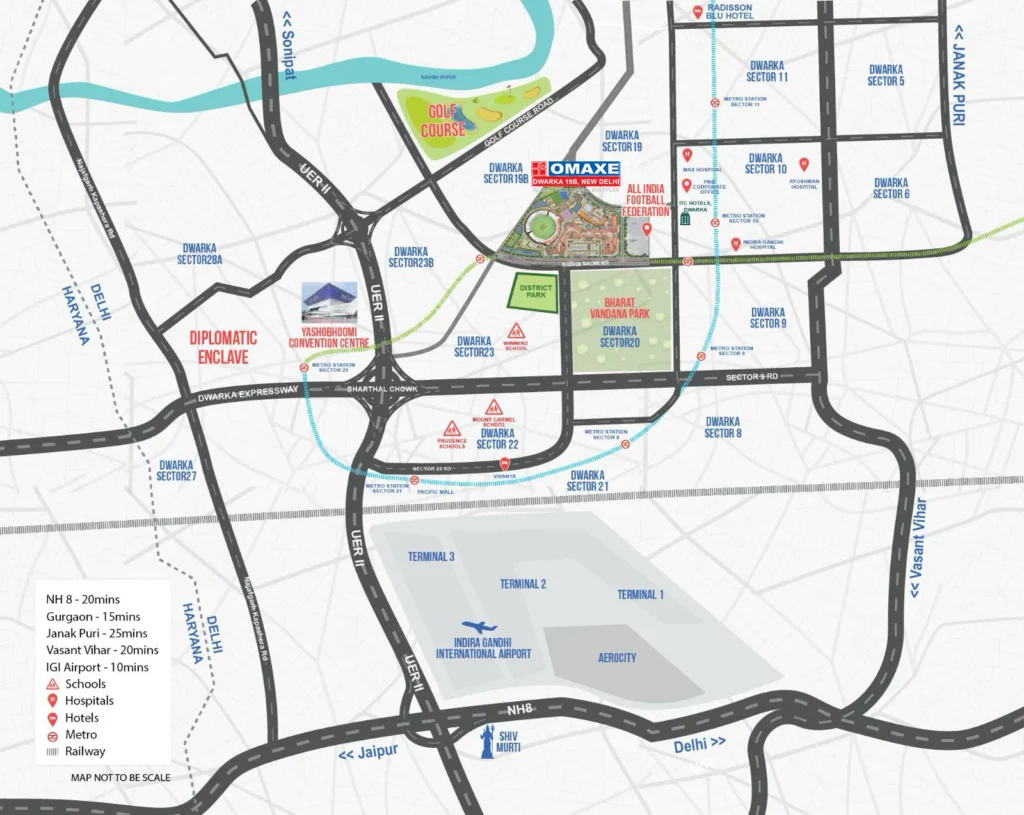 The Omaxe State is a 50.4-acre 5-in-1 destination in Dwarka, New Delhi, blending sports, shopping, dining, hospitality, and entertainment. Featuring a 30,000-seat cricket-cum-football stadium, a 2,000-capacity indoor arena, a 4.2 km air-conditioned retail stretch, a vibrant food district, and luxury amenities like an esports arena and terrace restaurants, it’s the ultimate hub for modern lifestyle and leisure.